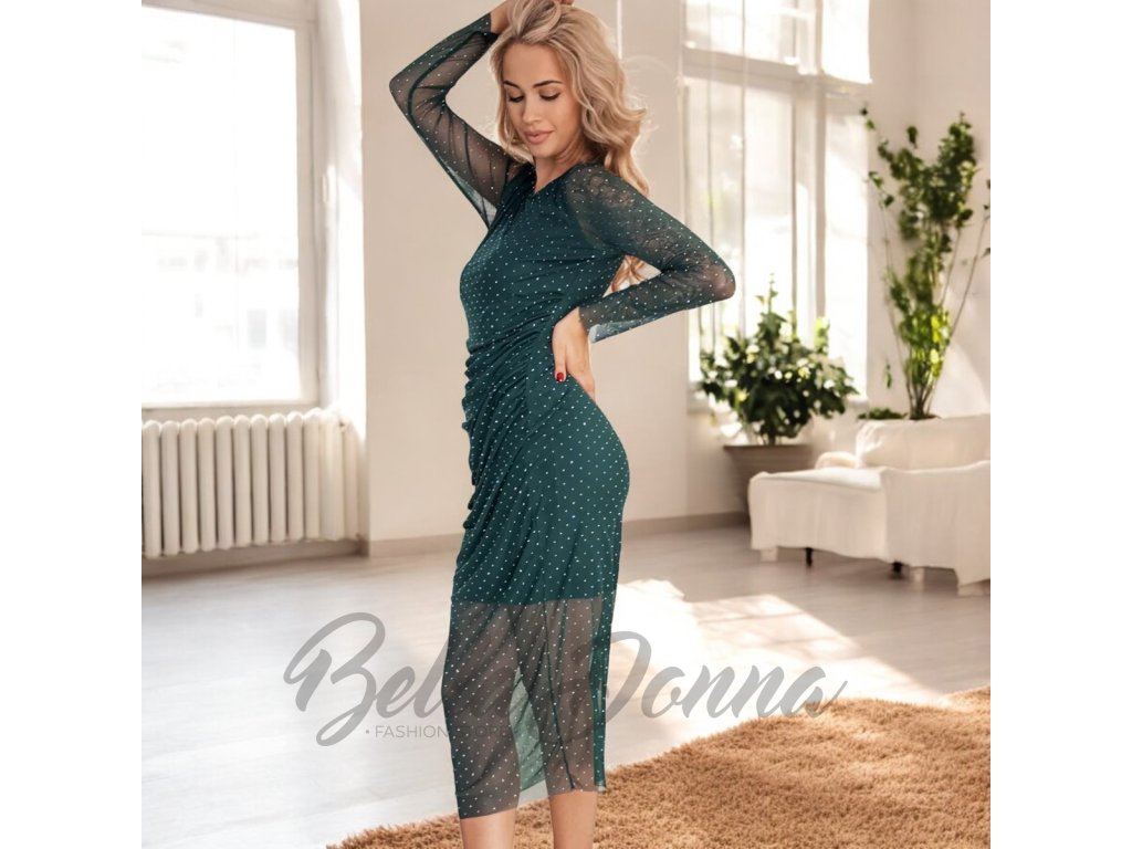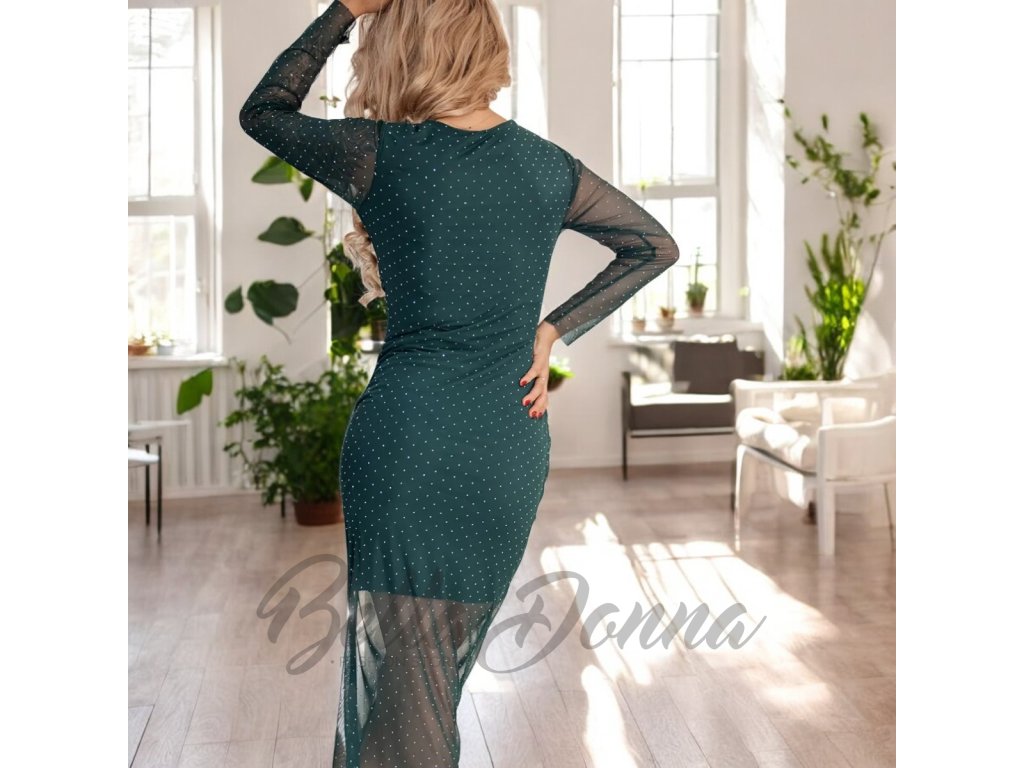 Zmyselné šaty z trblietavej látky – priliehavý strih v kombinácii s priehľadným lemom a rukávmi pôsobí elegantne a žensky. Ideálne na večerné nosenie, oslavy či špeciálne príležitosti.