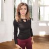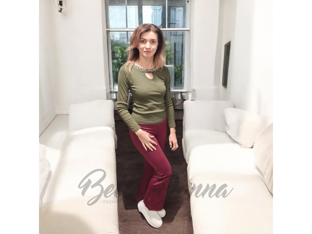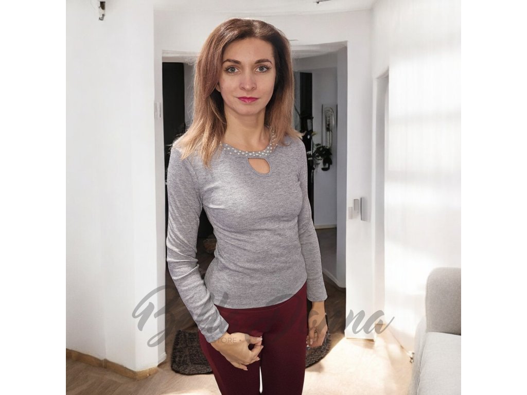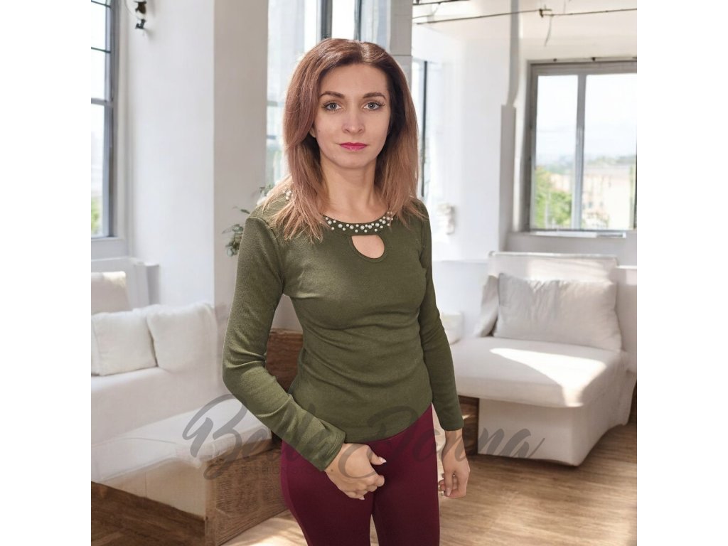 Elegantný top zdobený perličkami okolo goliera, ktoré mu dodávajú jemný a chic vzhľad. Strih krásne sadne na postavu, je pohodlný na nosenie a ľahko sa kombinuje s nohavicami či sukňami. Skvelá voľba na bežný deň aj na slávnostnejšie príležitosti.