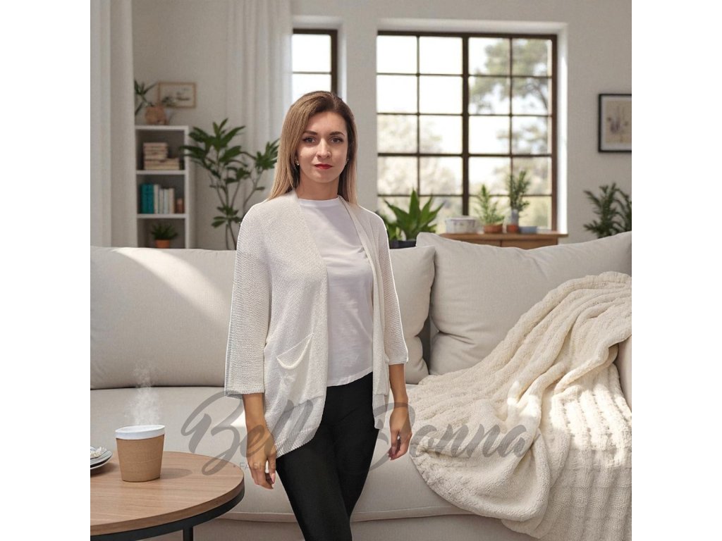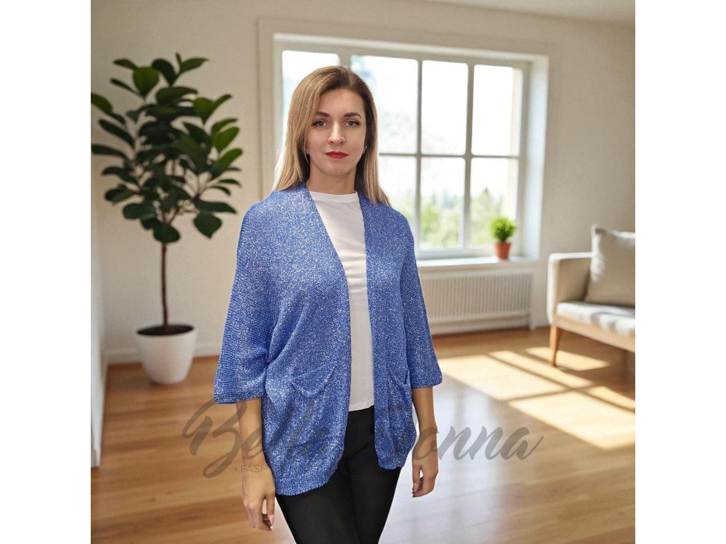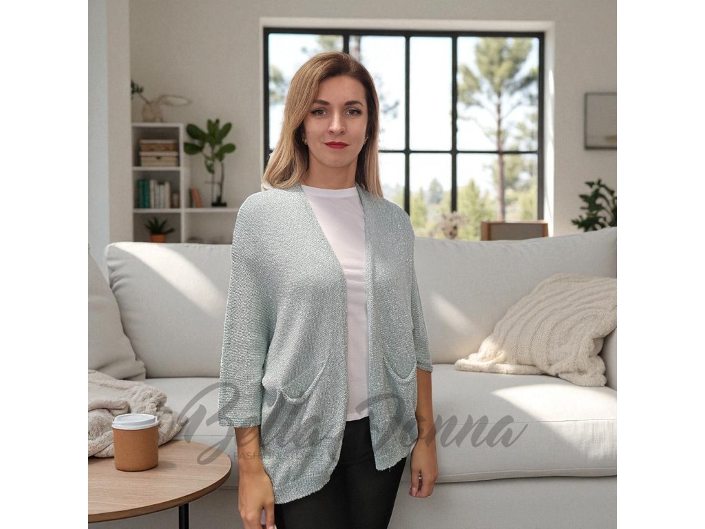 Tento ľahký a štýlový kardigan je zdobený jemnou striebornou nitkou, ktorá mu dodáva slávnostný nádych. Je ideálny na špeciálne príležitosti, no vďaka svojmu univerzálnemu vzhľadu ho využijete aj v každodenných kombináciách.