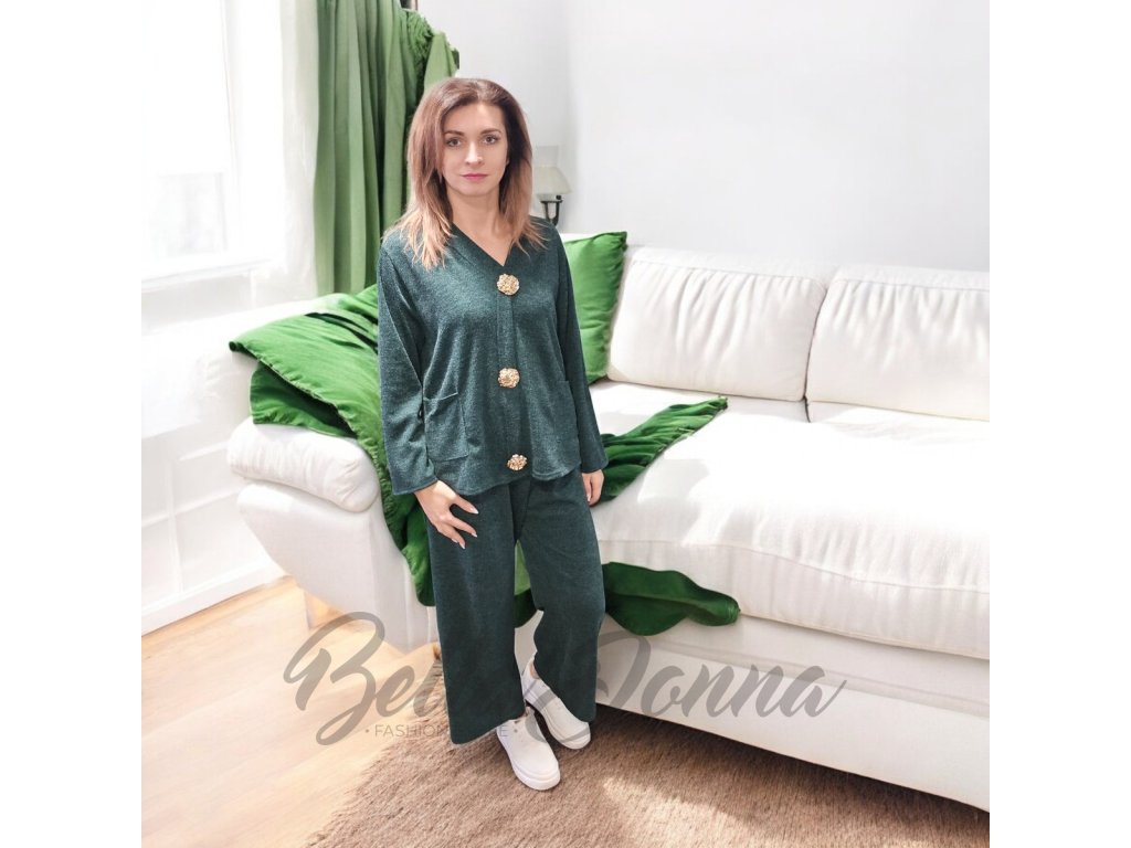 Úpletový komplet pre moletky z mäkkého a príjemného materiálu. Na vrchnom diele má krásne veľké švy, ktoré dodajú štýlový vzhľad, a praktické vrecká v páse. Súprava je pohodlná, elastická a ideálna na každodenné nosenie.