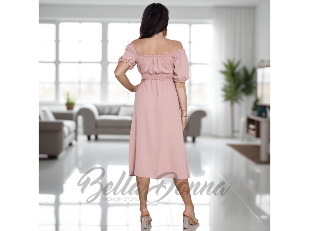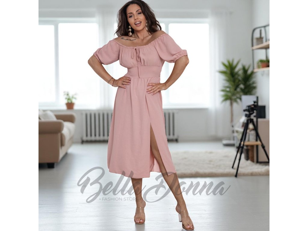 Jednofarebné španielske šaty s rozparkom v spodnej časti. Majú rukáv po lakeť a zaväzovanie pri výstrihu.