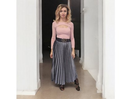 Zamatová skladaná sukňa je štýlovým kúskom, ktorý pridá každému outfitu šmrnc a eleganciu. Vďaka jemnému lesku zamatu a krásnemu skladaniu pôsobí sukňa luxusne, no zároveň je...