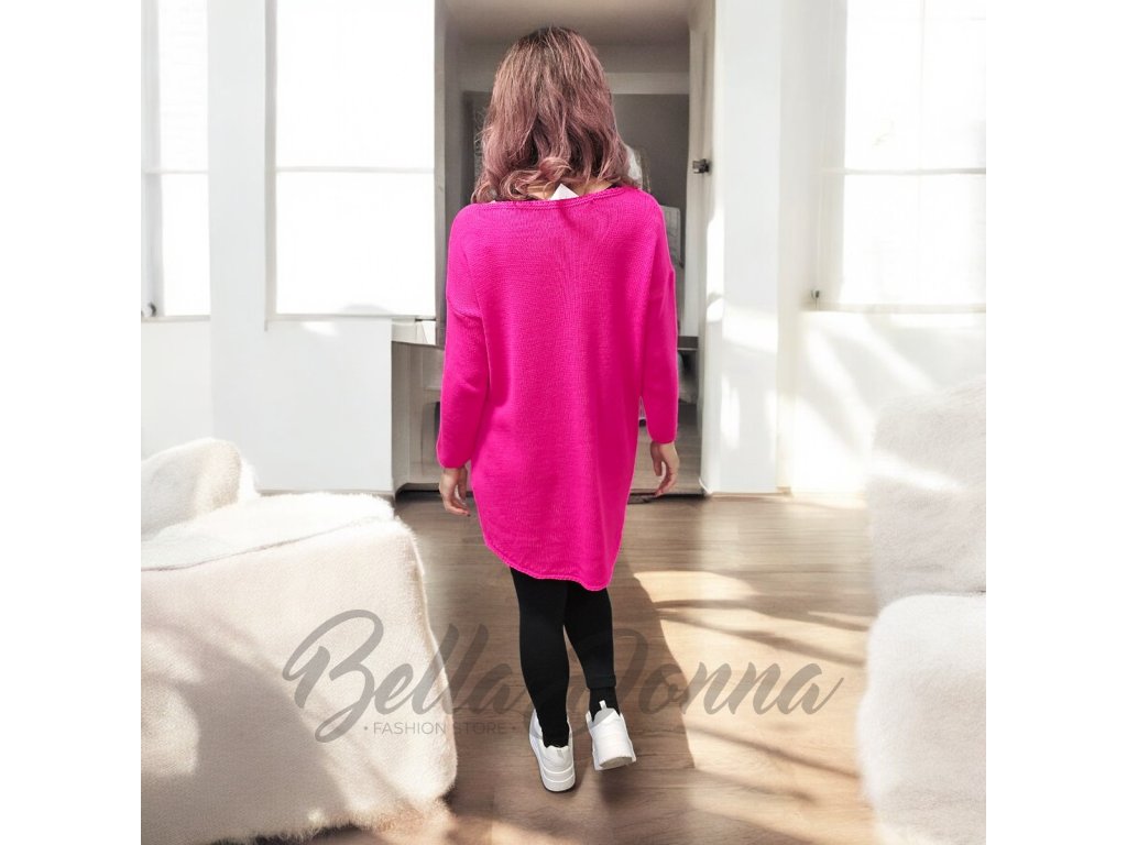 Tento krásny predĺžený pulóver je ideálny k legínam aj džínsom