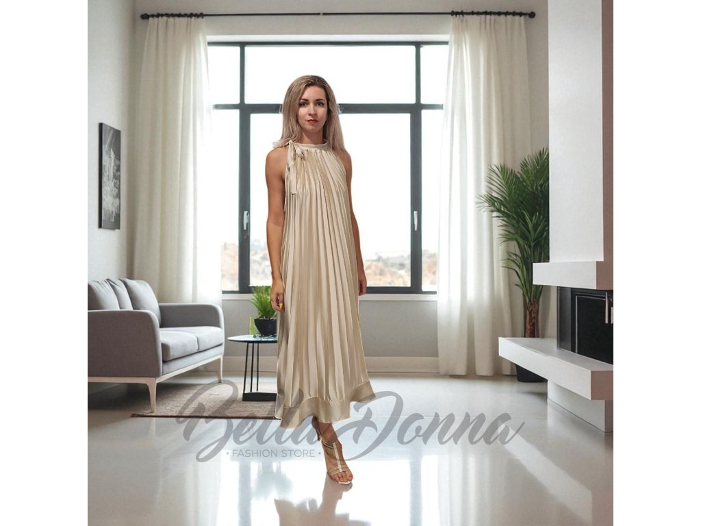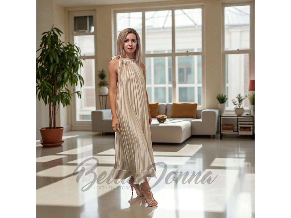 Maši saténové šaty – elegantné, jemne skladané a s viazaním okolo krku pre dokonalý ženský look.