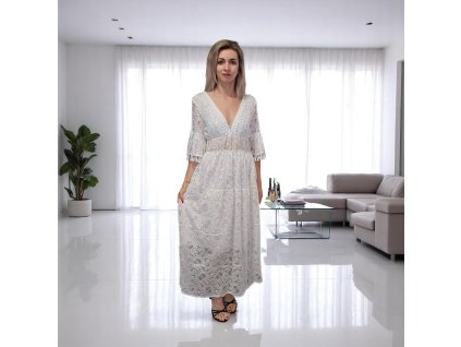 Romantické dlhé šaty v boho štýle, ktoré pôsobia ľahko a vzdušne. Pod prsiami majú krásny detail z priesvitnej čipky, ktorý dodáva jemný a ženský vzhľad. Perfektné na letné...