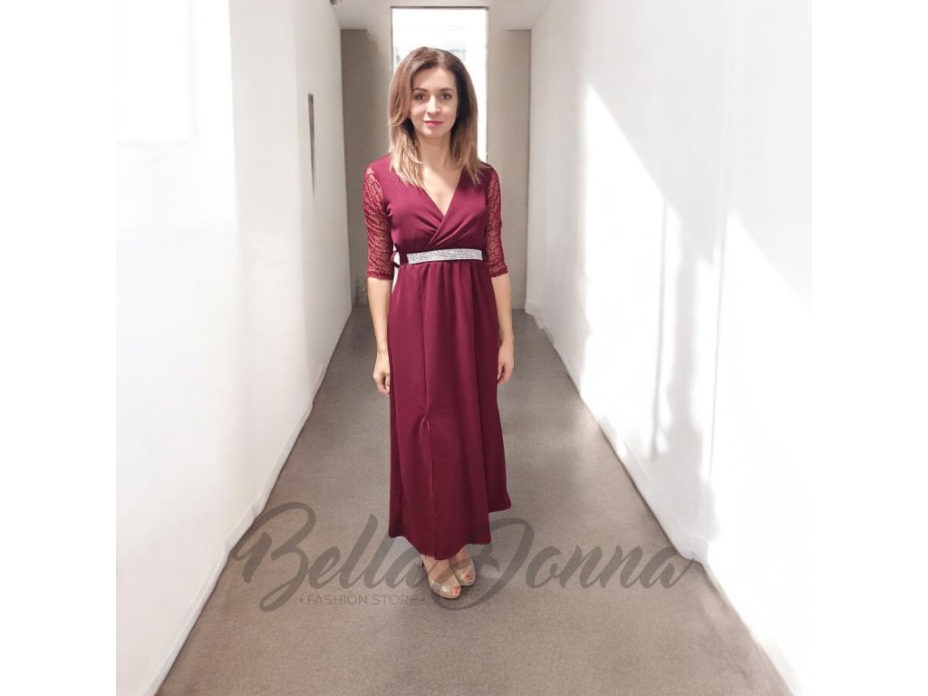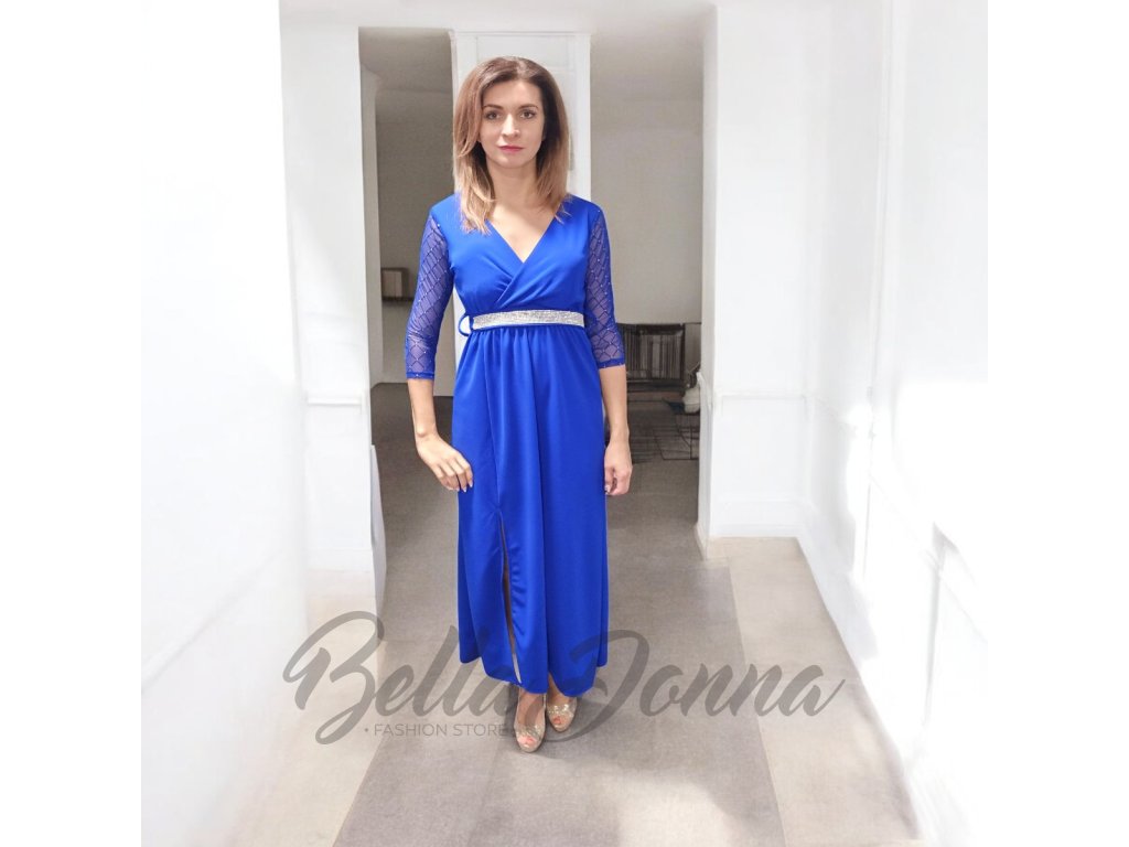Elegantné dlhé spoločenské šaty, ktoré zaujmú na prvý pohľad. Majú jemne trblietavé rukávy, ktoré pôsobia luxusne, a štrasový opasok, ktorý krásne zvýrazní pás a dodá šatám romantický nádych. Strih perfektne obopne postavu v oblasti pŕs a prirodzene padá do dĺžky, vďaka čomu sú vhodné na plesy, oslavy, svadby aj večerné podujatia.