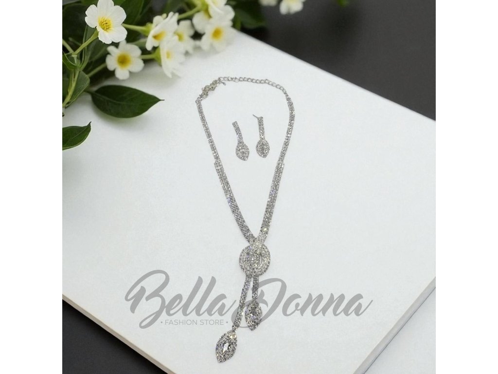 Elegantný a luxusný šperk, ktorý dodá vášmu outfitu výnimočný šmrnc. Set pozostáva z náušníc a náhrdelníka v striebornom prevedení, ideálny na špeciálne príležitosti, oslavy či večerné podujatia. Ženský, nadčasový a ľahko kombinovateľný.