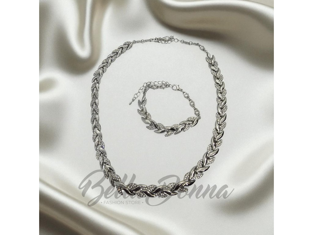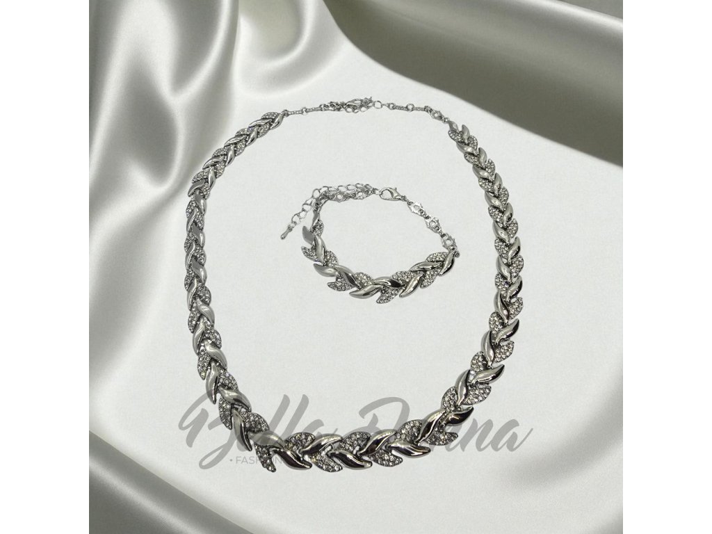 Elegantný a luxusný šperk, ktorý dodá vášmu outfitu výnimočný šmrnc. Set pozostáva z náušníc a náhrdelníka v striebornom prevedení, ideálny na špeciálne príležitosti, oslavy či večerné podujatia. Ženský, nadčasový a ľahko kombinovateľný.