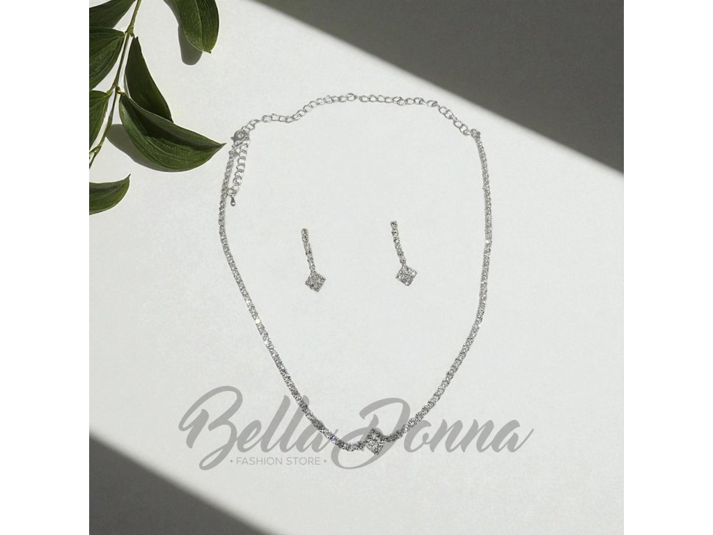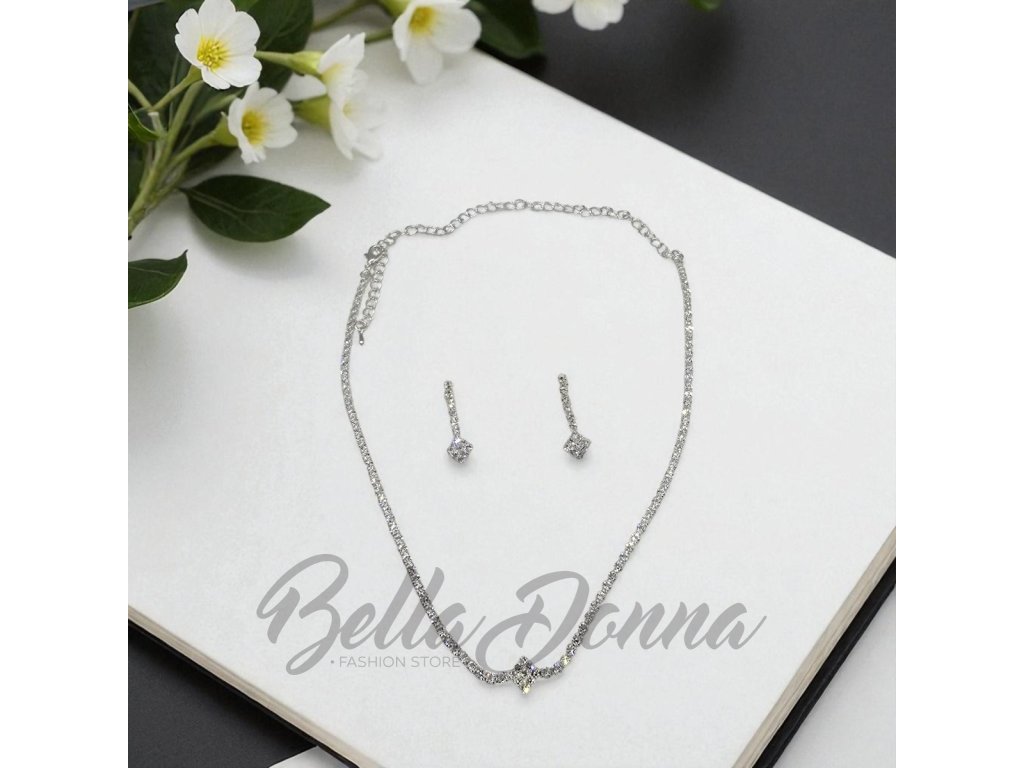 Elegantný a luxusný šperk, ktorý dodá vášmu outfitu výnimočný šmrnc. Set pozostáva z náušníc a náhrdelníka v striebornom prevedení, ideálny na špeciálne príležitosti, oslavy či večerné podujatia. Ženský, nadčasový a ľahko kombinovateľný.