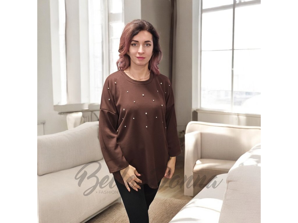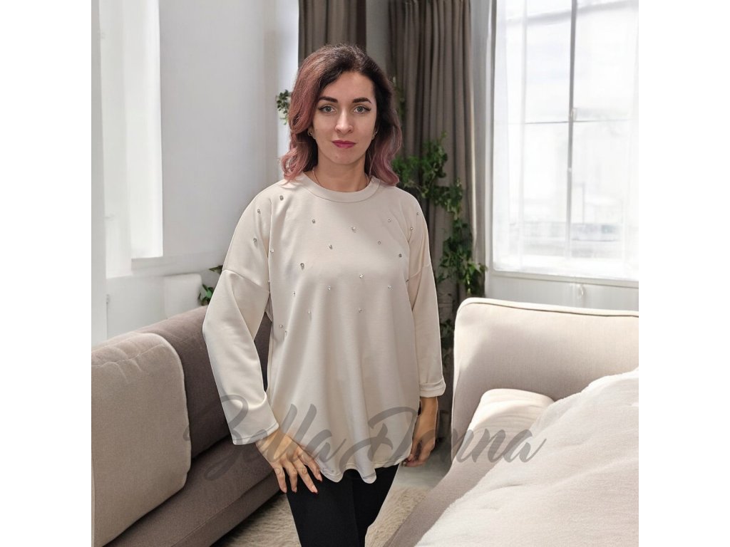Elegantný dámsky top s jemnými trblietkami. Vyrobený z príjemného, hladkého a mäkkého materiálu, ktorý sa krásne nosí. Perfektne sedí a dodá outfitu štýlový nádych.