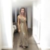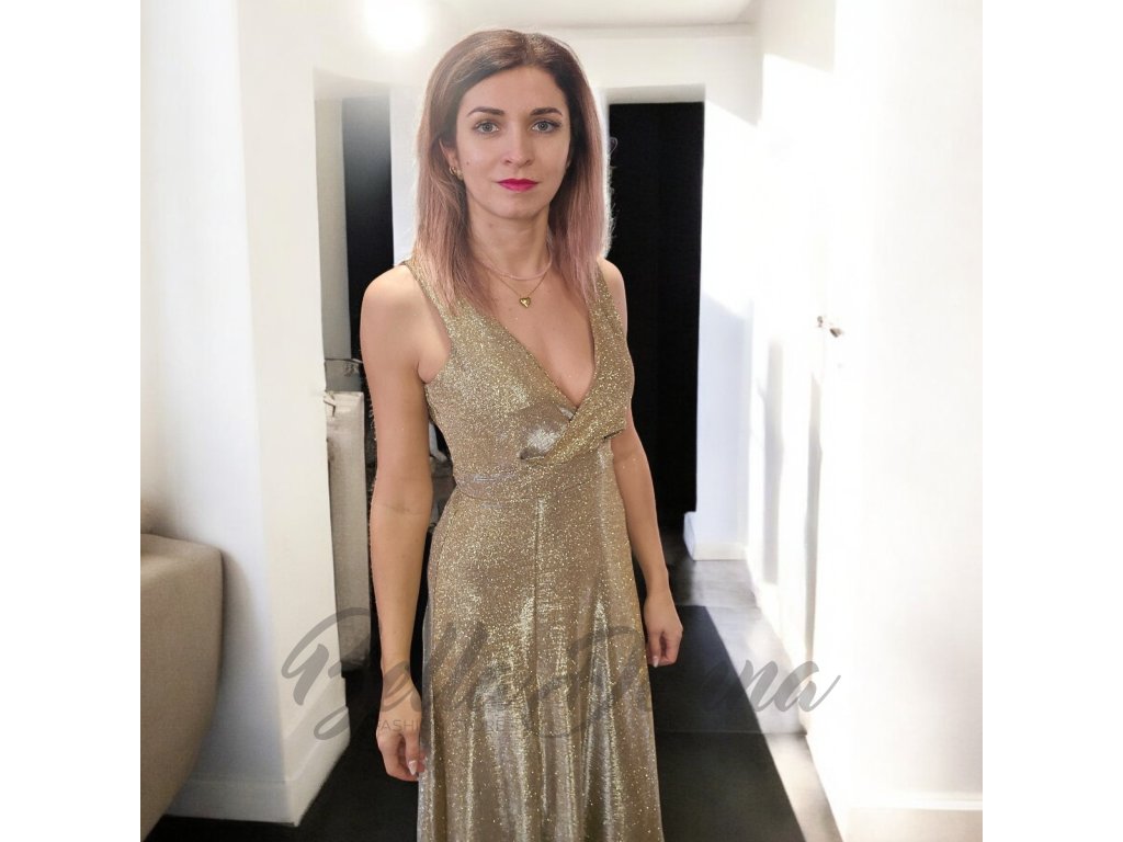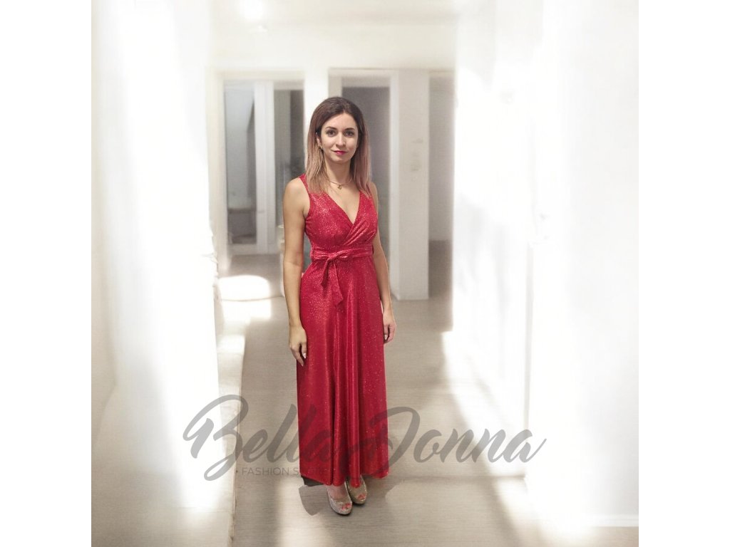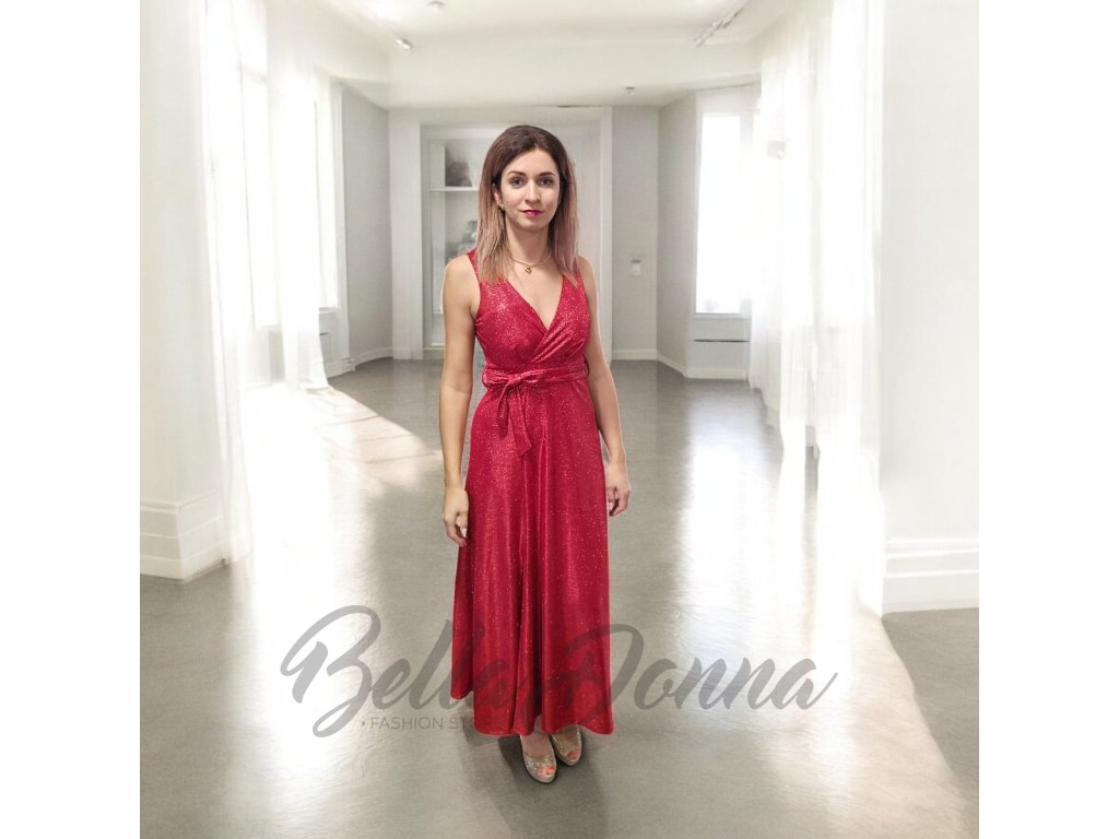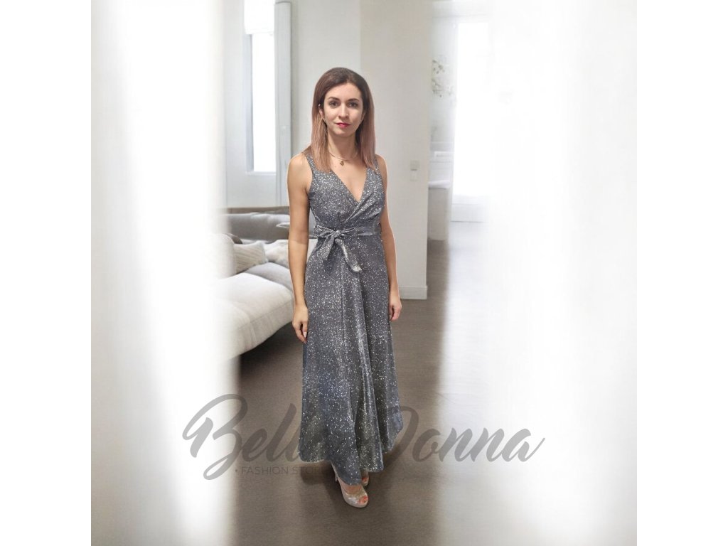 Elegantné dlhé trblietavé spoločenské šaty s rozparkom a ozdobným opaskom sú ideálnou voľbou na plesy, svadby či večerné oslavy. Vzadu sa zapínajú na zips, vďaka čomu krásne sedia na postave a zvýraznia ženské krivky. Lesklý materiál dodáva šatám luxusný vzhľad, zatiaľ čo jemný strih s rozparkom umožňuje pohodlný pohyb. Dostupné vo veľkosti prsia 80–100 cm, dĺžka 140 cm.