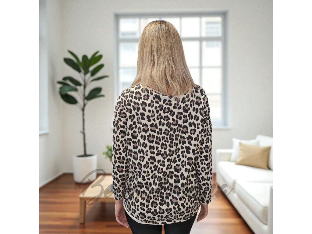 Elegantné tričko s dlhým rukávom a módnym leopardím vzorom. Je vyrobené z príjemného, ľahkého materiálu, ktorý sa pohodlne nosí a krásne padne na postavu. Vďaka univerzálnemu strihu je vhodné na bežné nosenie, ale aj na špeciálne príležitosti.