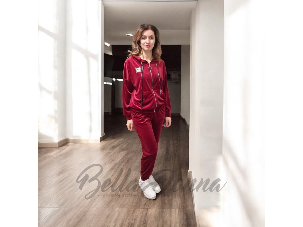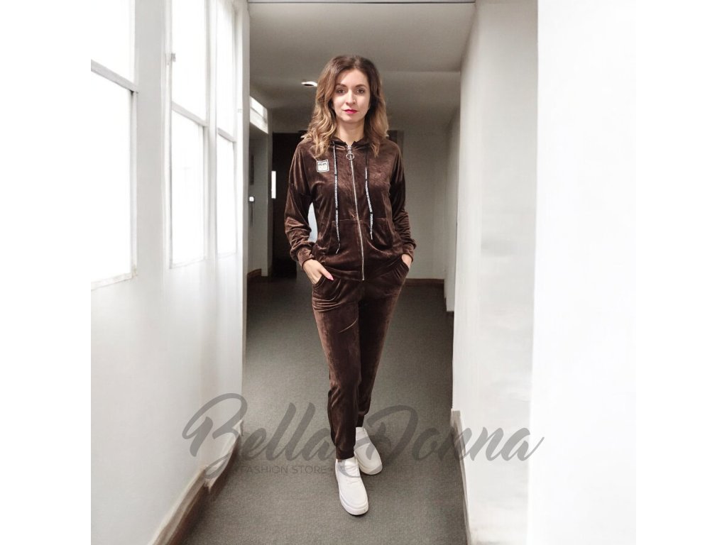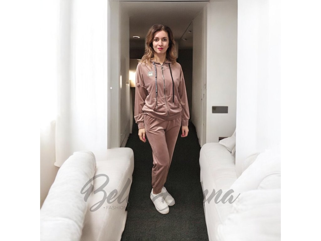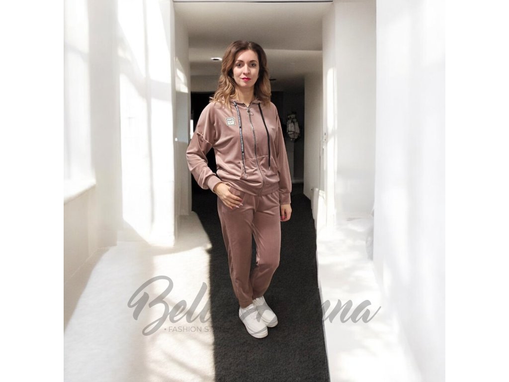 Voľnočasová súprava zo zamatového, veľmi príjemného materiálu. Bundička na zips, pohodlný pás a pekný strih nohavíc. Ideálna na bežné nosenie, cestovanie aj domáce pohodlie.